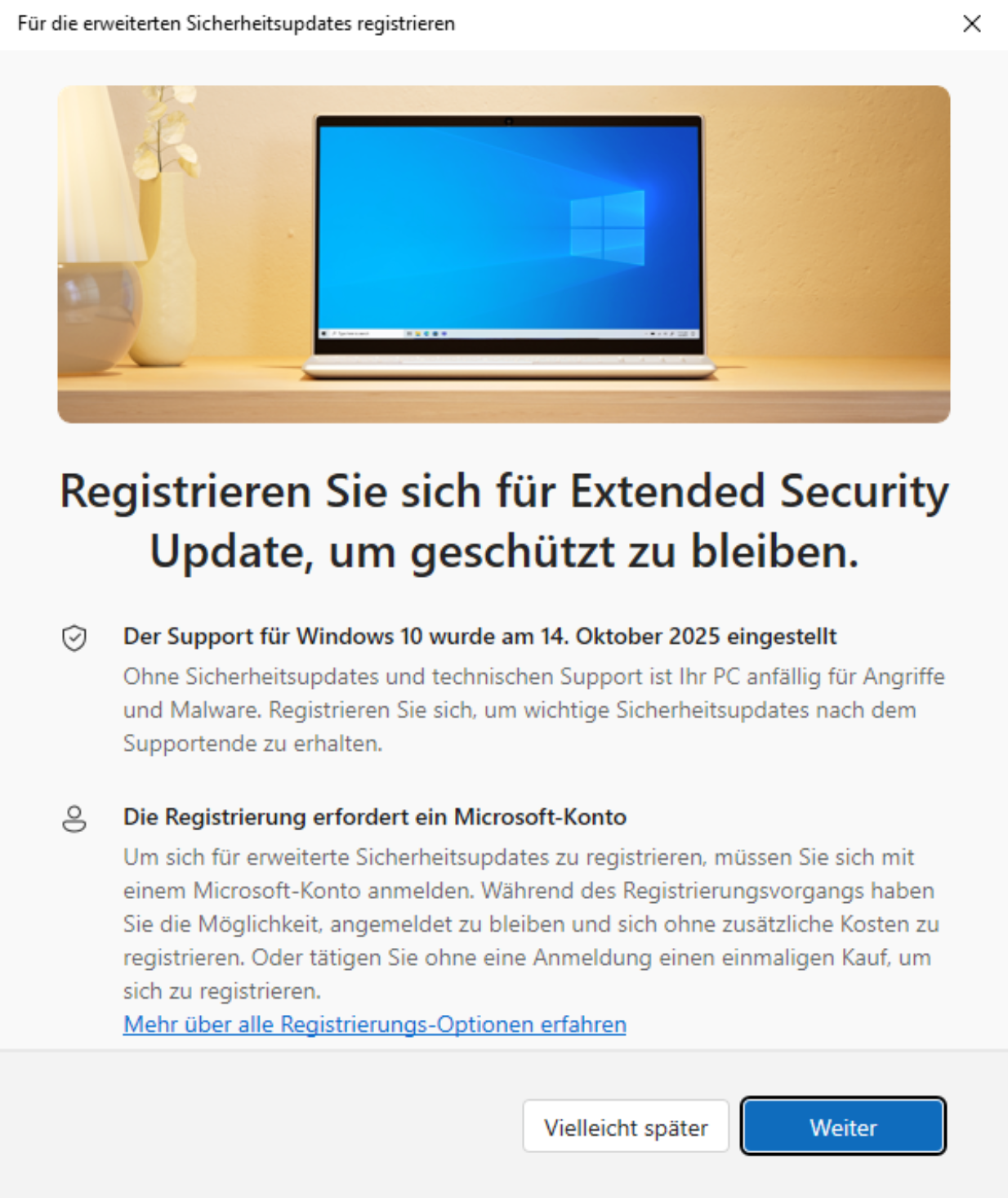 Extended Security Updates (ESU) bis 13. Oktober 2026 für Windows 10 aktivieren